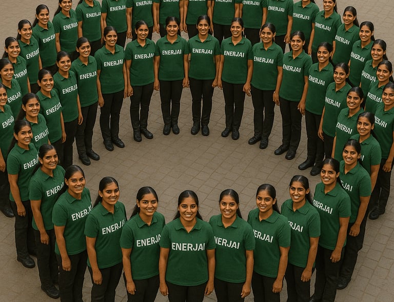 In Phase III, Enerjai aims to establish green hydrogen production facilities through seawater desalination and electrolysis powered entirely by biofuel-based renewable energy—creating a fully integrated, self-sustaining green-energy ecosystem that spans pellets, biogas, and hydrogen.Enerjai envisions a fully women-driven operational model where every function—from field activities to plant management—is led and managed entirely by women. This 100% women-powered ecosystem is designed to create rural